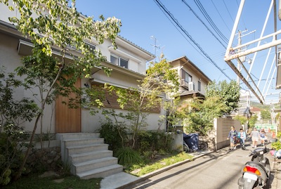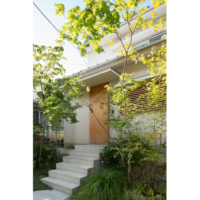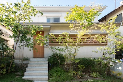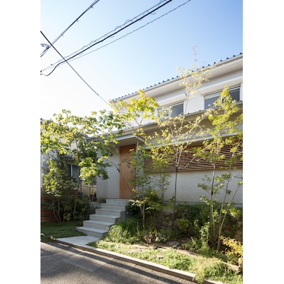 限られた予算だったので、既存サッシをできる限り生かしながら、ファサードには、木製の格子を設けて、ランダムな窓をまとめてすっきり見えるようにしました。