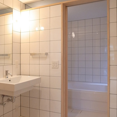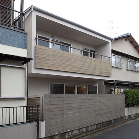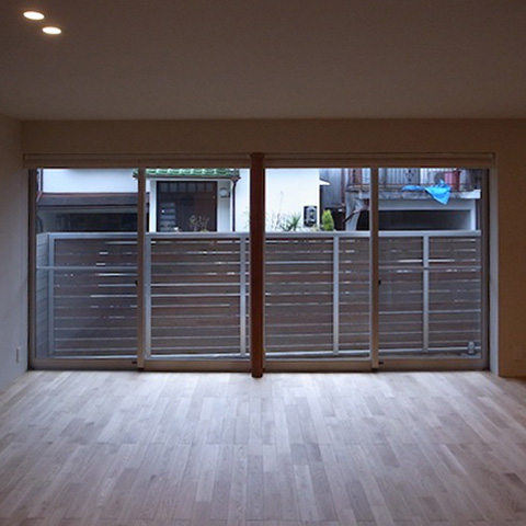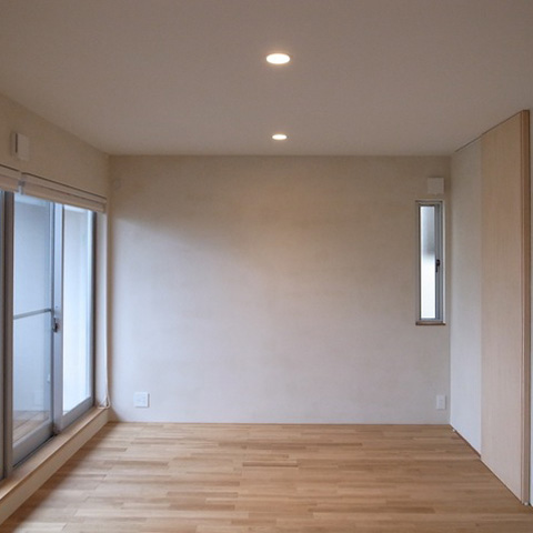 千里山の家 t+a 木造2階建 戸建住宅 新築 2012年 1階にLDK、2階に各個室と水回りを配置し、コンパクトでシンプルな住まいを心がけました。 北面、南面共道路に面しており、南側は、塀によってプライバシーを確保できる庭に向かってリビングの開口を全面的に確保した。 北側2階の水廻りはインナーバルコニーに向かって開口をとることで、プライバシーを確保しながら通風・採光を確保した。
