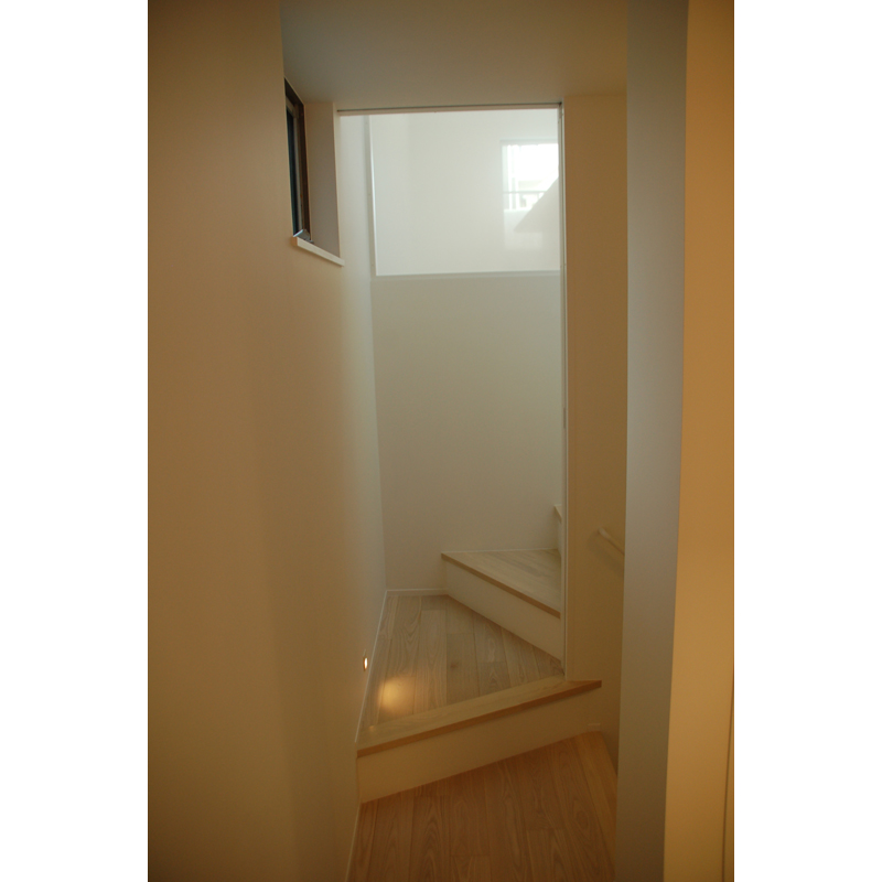 シンプルなデザインがご希望でしたので、仕上げ材の種類を少なくし、階段や各部のおさまりをなるべくシンプルですっきりとしたデザインとしています。